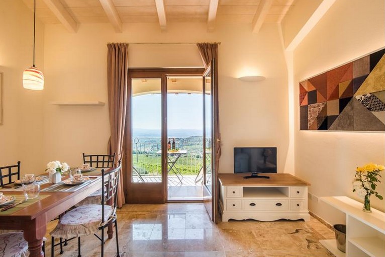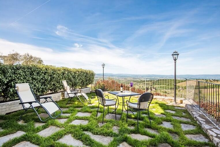 Dal soggiorno si accede ad una graziosa area esterna dalla vista stupenda che si affaccia sulla vallata nel cuore più verde del Chianti. Bagno con doccia, realizzato in travertino.