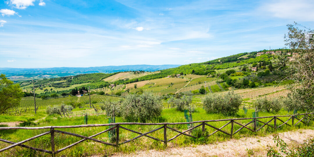 Dall’edificio si gode di una vista stupenda sulla Val d’Elsa e sui vigneti della collina, dai quali nascono i pregiati vini delle Antiche Tenute Squarcialupi.