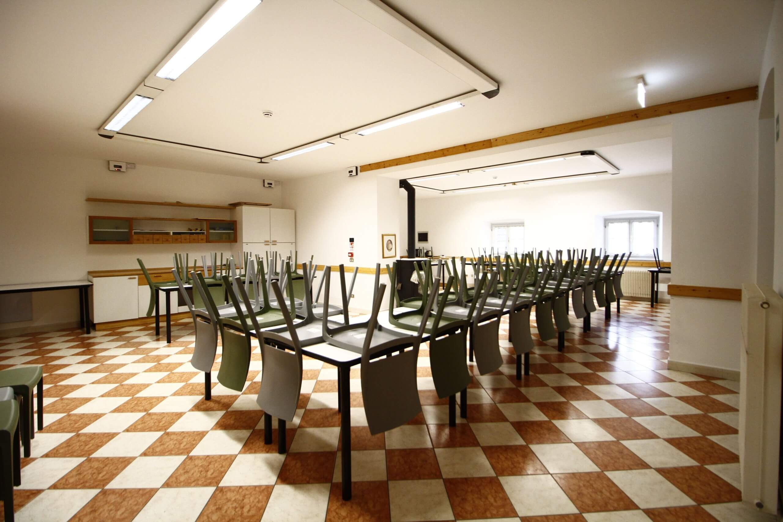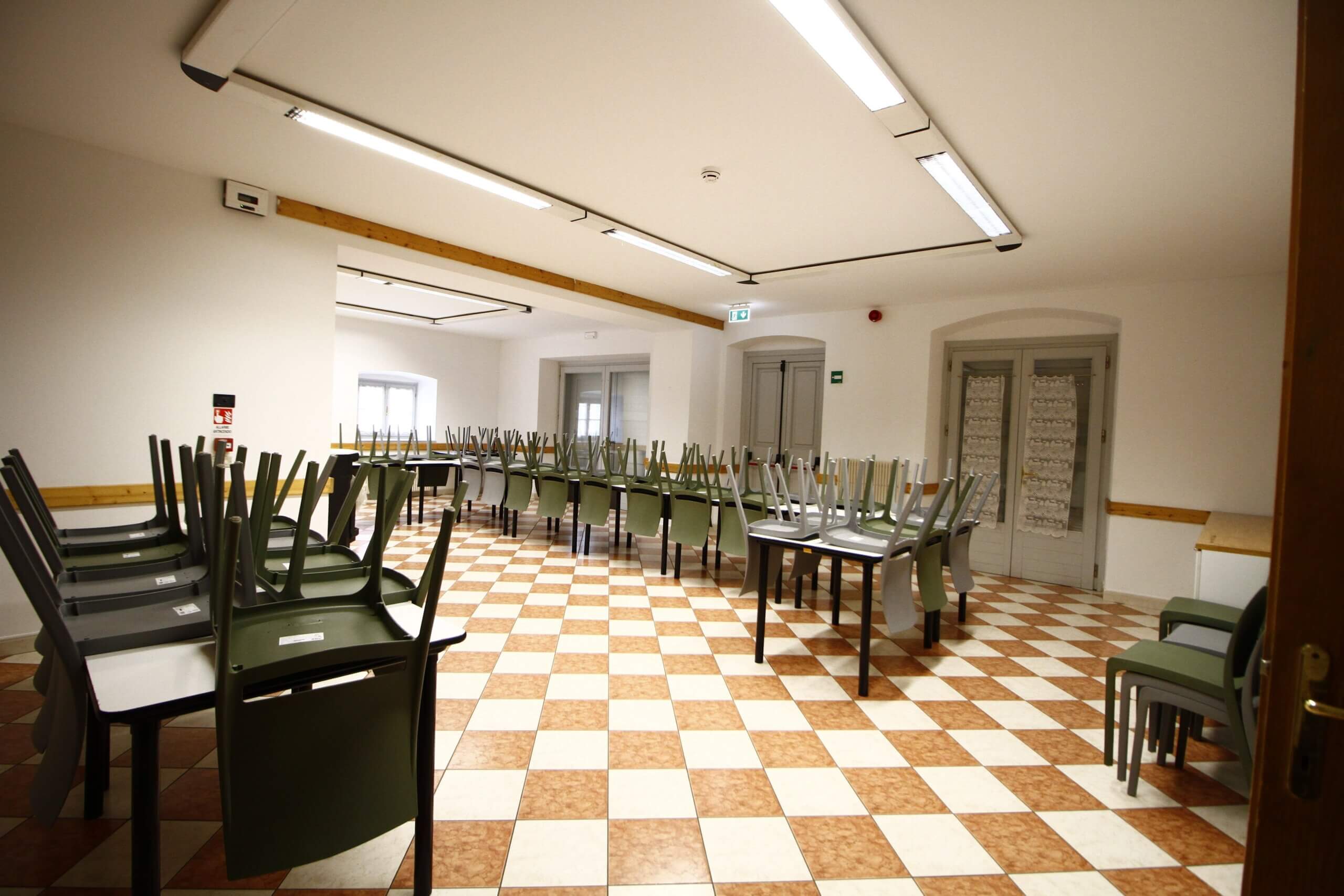 La struttura è disposta su due livelli: nel piano terra è presente la grande cucina industriale accessoriata ed una sala da pranzo di circa 150 mq. servizi igenici e spazio comune / sala ristoro.